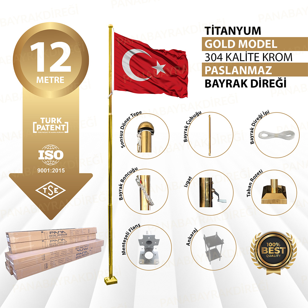 12 Metre Bayrak Direği Titanyum Gold Model Ürün Detayı