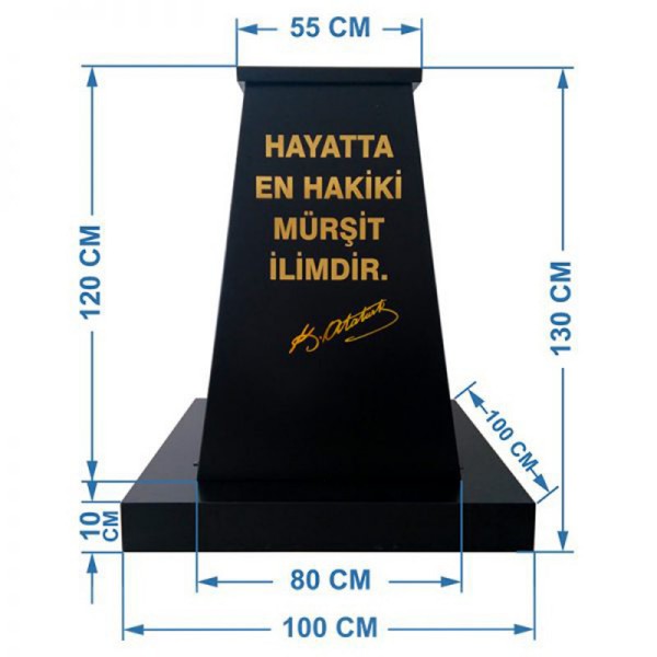 Atatürk Büstü kaidesi alt tablalı model olarak imal ettiğimiz, bu modelin çift taraflı paslanmaz galvaniz sac üzerine elektrostatik fırın boya yapılmıştır .